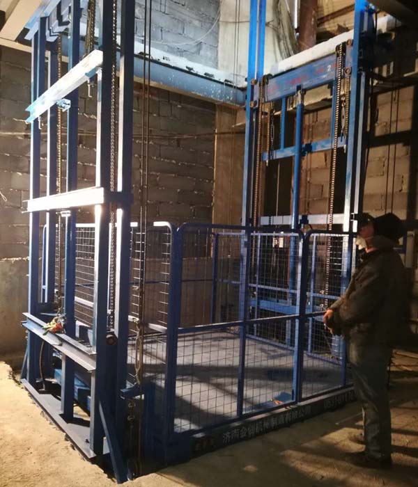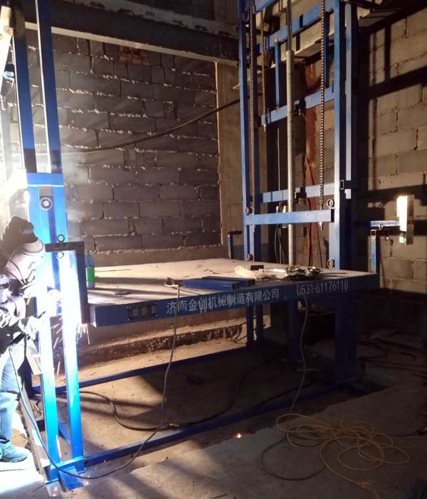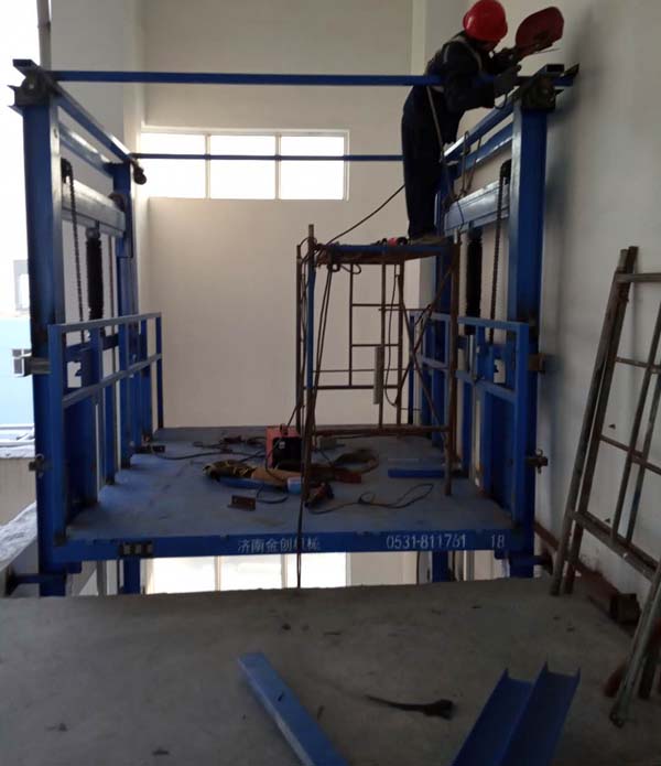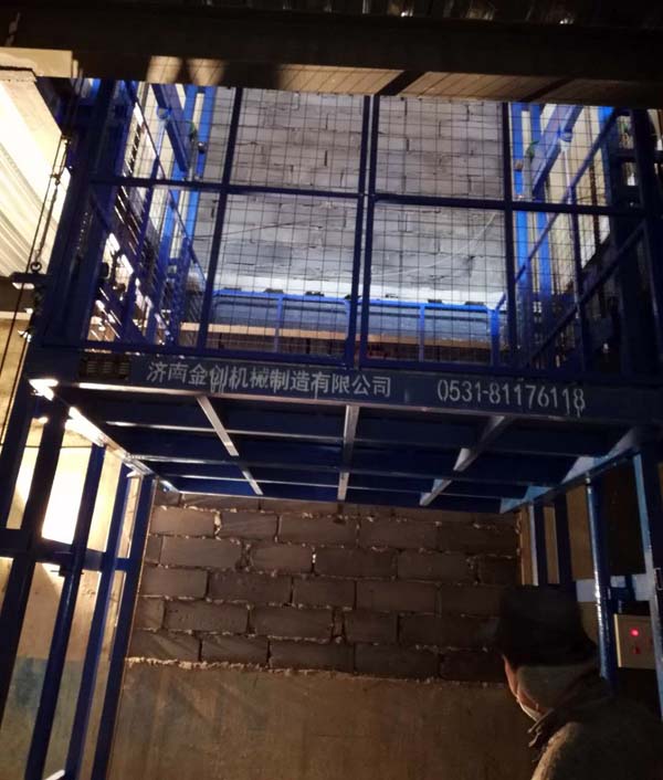 液壓升降貨梯生產(chǎn)制造廠家-濟(jì)南金創(chuàng)機(jī)械制造有限公司,為威海客戶定做的升高13米,載重5噸的導(dǎo)軌鏈條式液壓升降貨梯,嚴(yán)寒天氣下,經(jīng)過安裝師傅加班加點(diǎn)的努力,昨天下午通過了客戶方的驗(yàn)收工作。